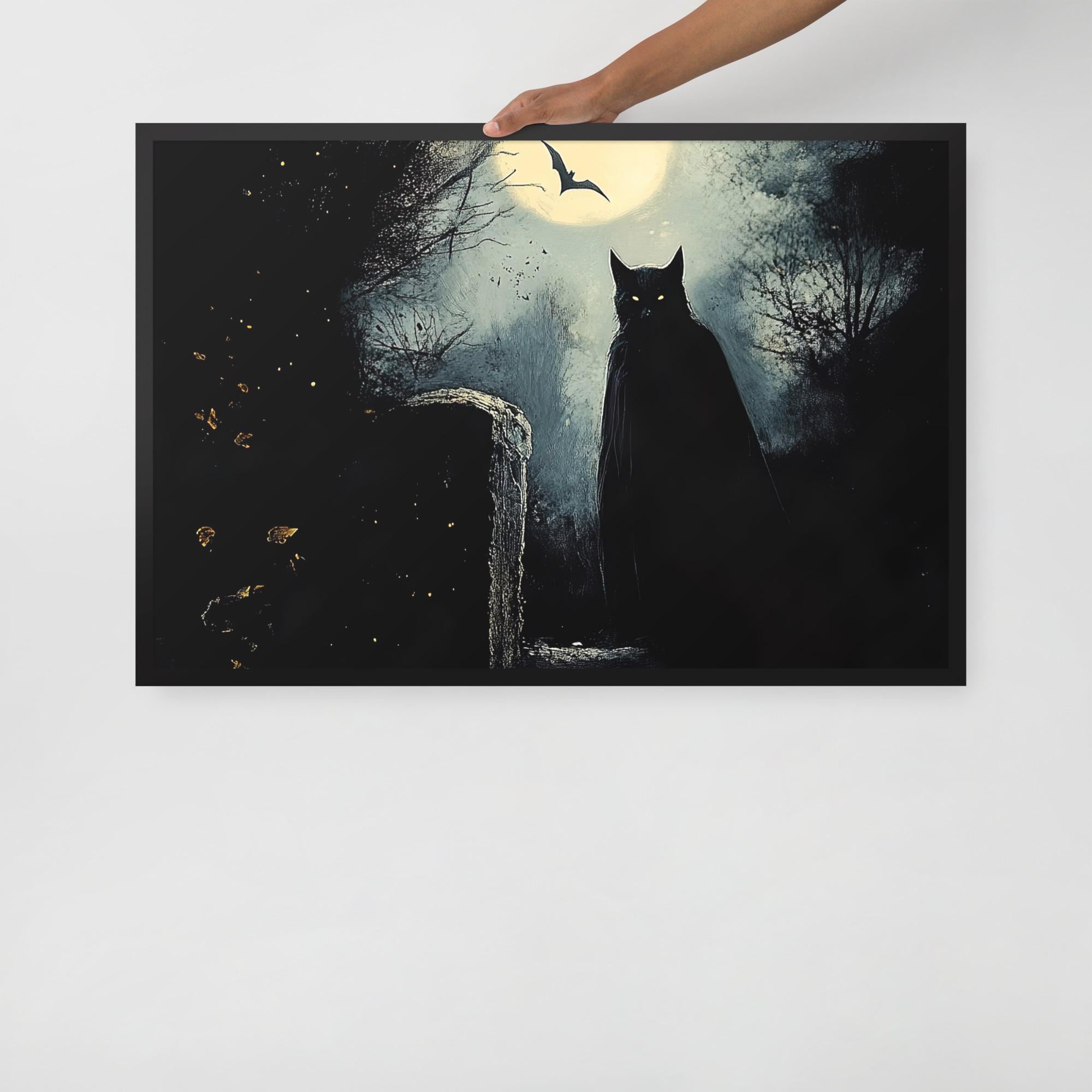 Each detail—the cracked window, the peeling wallpaper, the flicker of ghostly silhouettes—whispers stories of lives once lived and never fully left behind. Printed on sumptuous matte paper and framed in warm, renewable wood, this piece not only invites contemplation but becomes a statement of eerie beauty and gothic sophistication. Perfect for those drawn to the mysterious, the melancholic, and the otherworldly, **“Lingering Guests”** transforms any room into a sanctuary of spectral elegance.