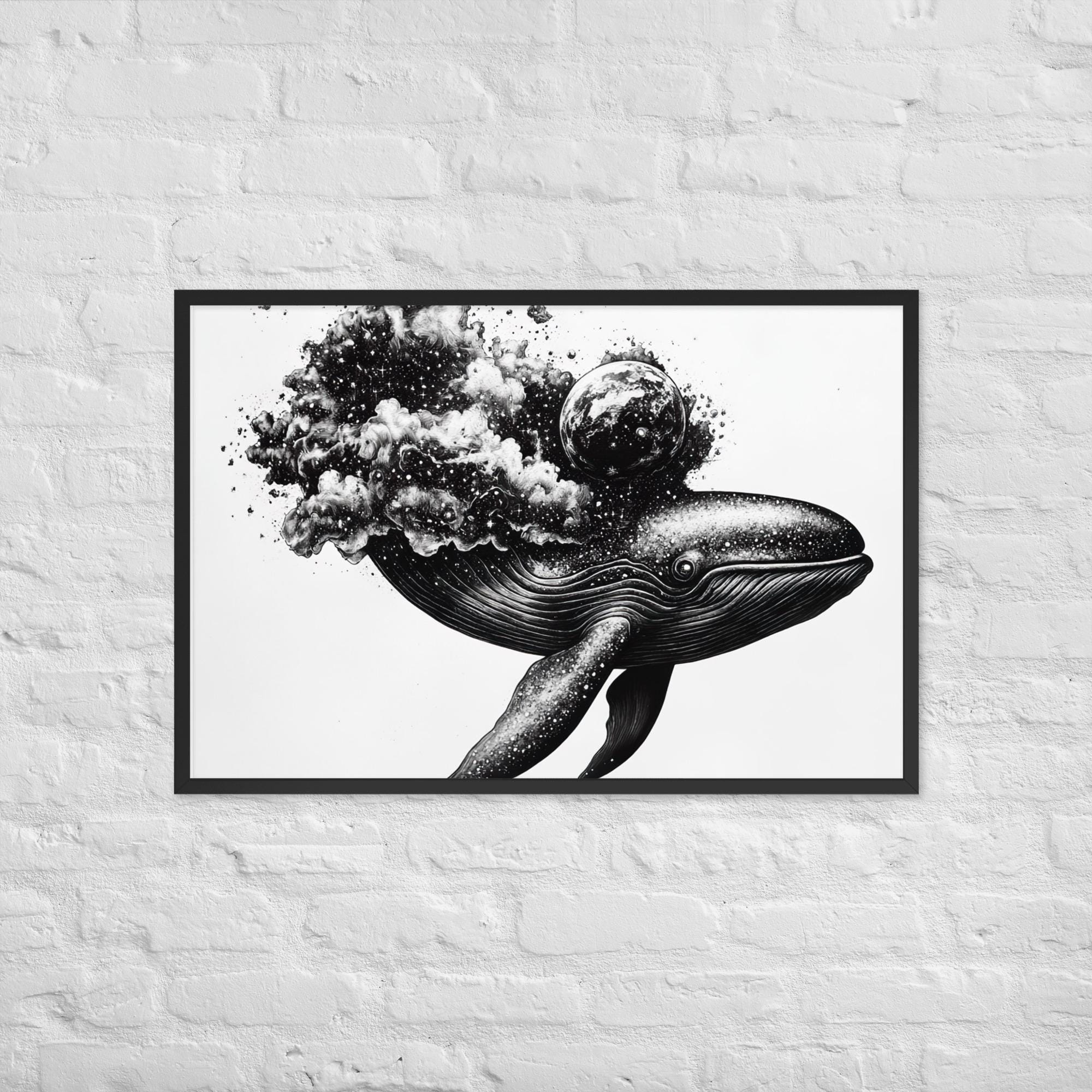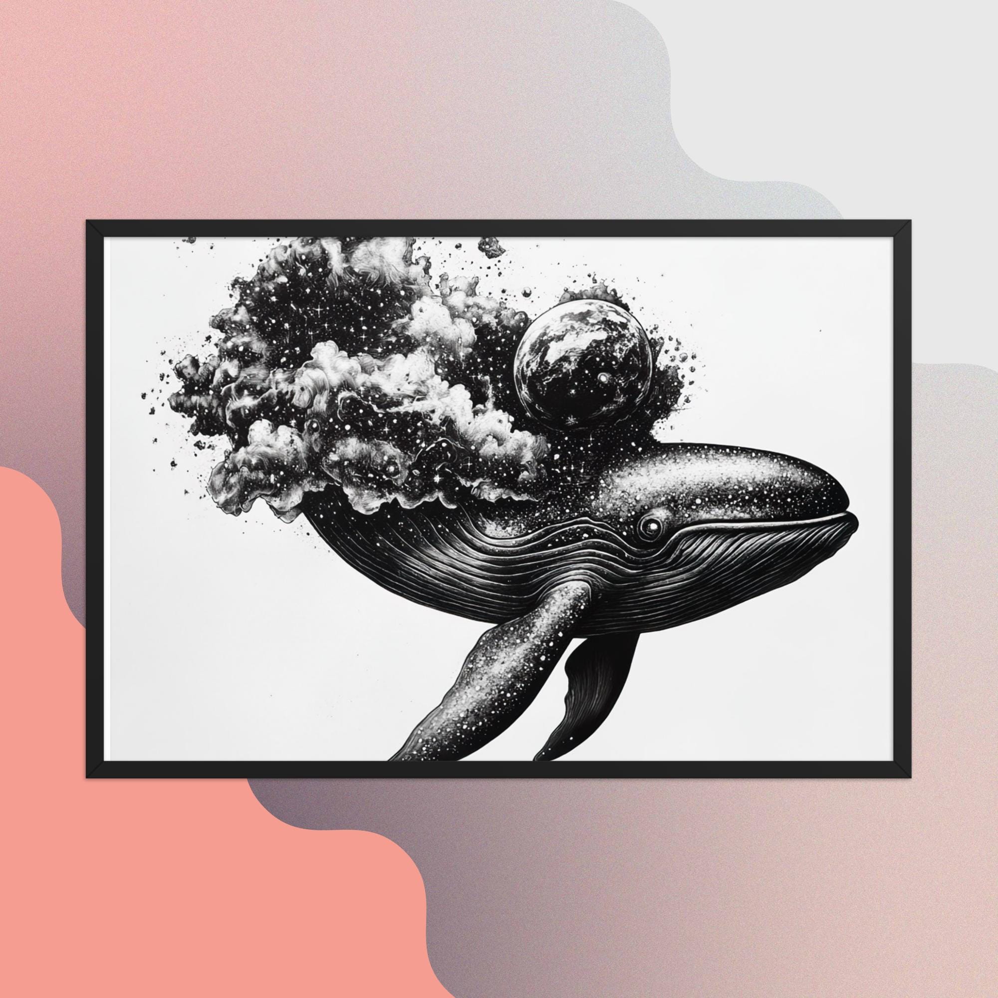 * It becomes a focal point in any room—bedroom, living room, study—bringing in wonder and calm. * Perfect for lovers of fantasy, space art, surrealism, or marine life—blends those worlds beautifully. * It evokes emotion: dreaming, exploration, a reminder of how small and magical the universe is. * The physical build is premium: printed on **thick matte paper**, framed in matte black **Ayous wood** from renewable forests, with an **Acrylite front protector** and hardware included. * Available in multiple sizes, so it can command a wall or fit a cozy spot.